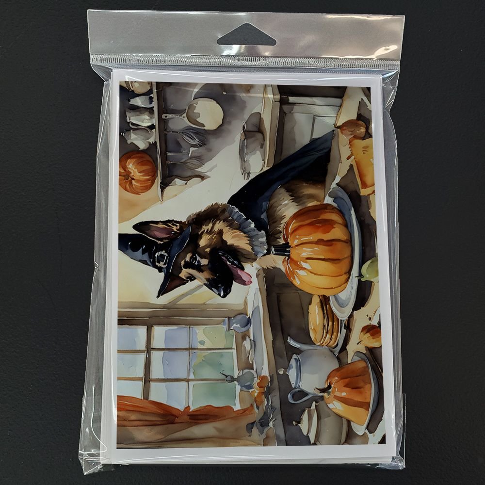 Greeting Cards Pack of 8 featuring breed specific German Shepherd artwork. Celebrate Halloween with this Halloween . Celebrate special moments with Caroline's Treasures Printed Greeting Card Pack. This pack includes eight beautifully folded 5x7 cards, accompanied by eight matching white envelopes. With blank interiors, these cards provide ample space for your personalized messages and heartfelt holiday greetings. Each card features captivating full-color artwork, meticulously printed in our facility on high-quality 80 lb cover stock or 216 GSM. The super smooth finish of the white cards enhances the visual impact of the artwork, creating a truly stunning presentation. Designed by our talented in-house artists or licensed artists, the artwork on these cards showcases their creativity and attention to detail. From vibrant illustrations to captivating designs, each card tells its own unique story. Whether it's for birthdays, anniversaries, holidays, or any special occasion, Caroline's Treasures Greeting Card Pack is the perfect way to convey your heartfelt sentiments. Share joy, love, and warm wishes with these exquisite cards and make every moment unforgettable.