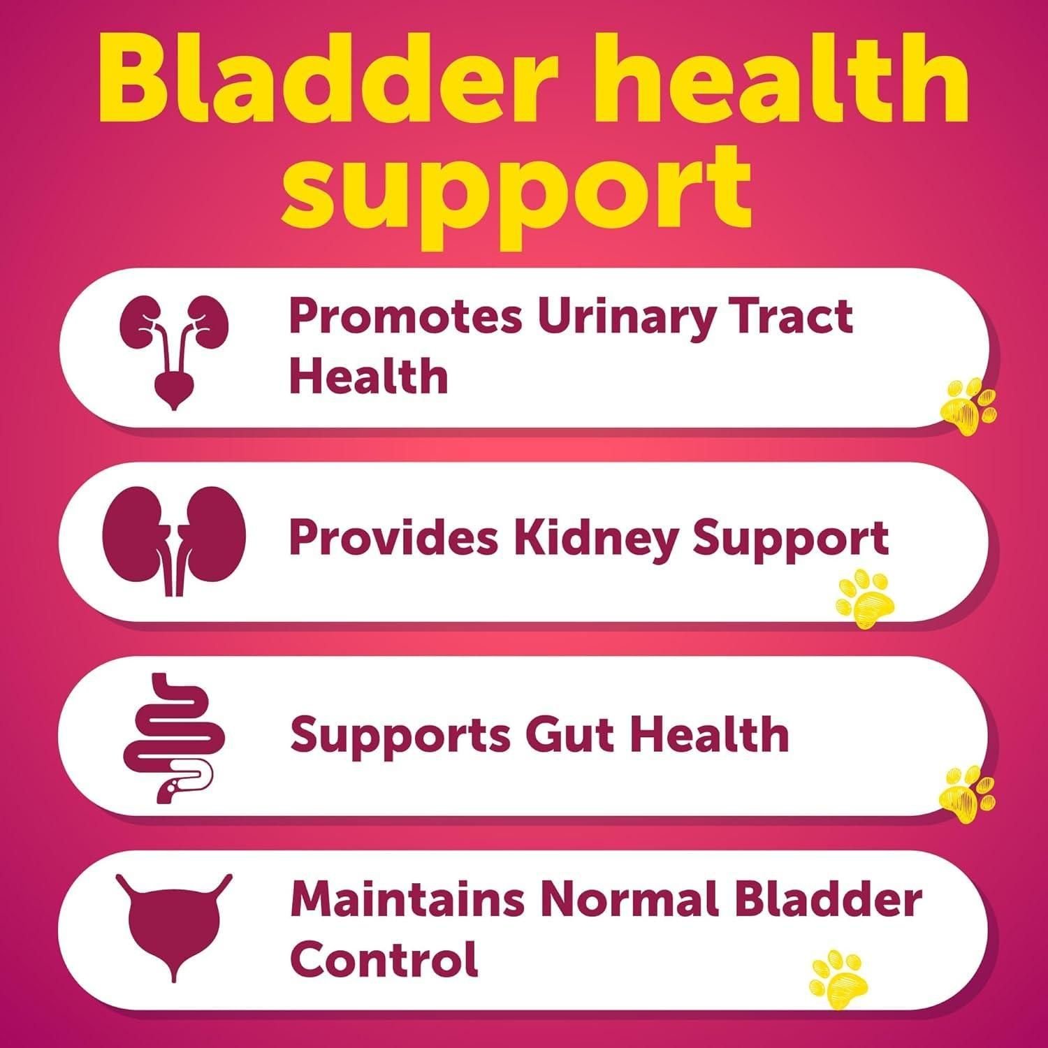 2.advanced bladder support for dogs - trust our cranberry bladder chews, a trusted name among dog incontinence products, to provide reliable bladder control and robust support for your dog's urinary health
