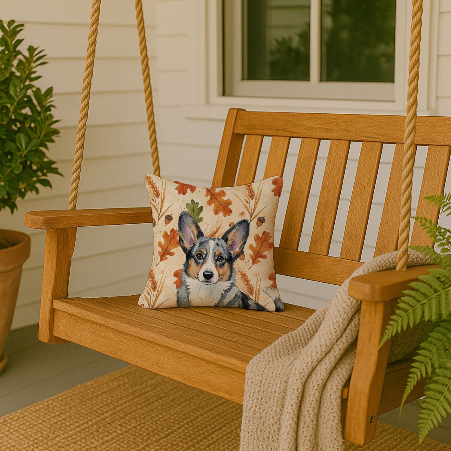 Home > Blue Merle Cardigan Welsh Corgi Heirloom Fall Throw Pillow Decorative Indoor Outdoor Accent Cushion for Couch, Bed or Patio, 14Hx14W