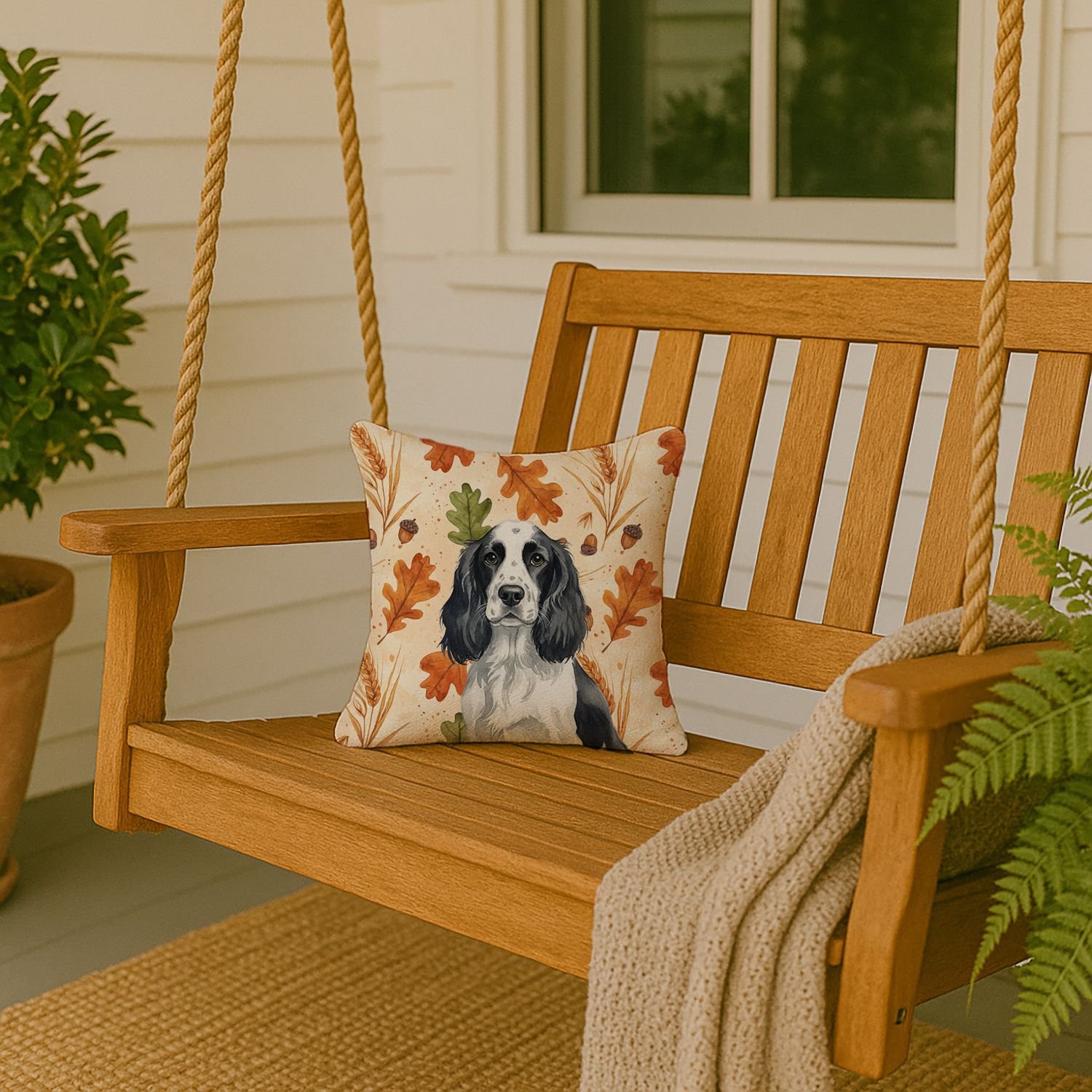 Throw Pillow featuring breed specific English Springer Spaniel artwork. Celebrate Thanksgiving with this Thanksgiving Pillow. Add a touch of vibrancy and comfort to your outdoor seating with Caroline's Treasures Fabric Decorative Pillow. Measuring approximately 14 inches by 14 inches, this outdoor pillow is crafted to elevate the appeal of your patio furniture, infusing it with vivid color and artistic flair. The pillow includes a 100% Polyester Fabric sham filled with a quality pillow form to provide superior comfort. Innovatively made from our brand new material, specifically woven for its water resistance, this pillow is designed for durability. The soft canvas fabric offers versatility in use, fit for your indoor couch or your outdoor patio, porch, or veranda. The fabric is dyed with colorfast dyes built for resilience against weather conditions, ensuring the pillow retains its beauty over time. Constructed by sewing three fabric pieces to create a sham, the polyester insert is then nestled inside to form the pillow, resulting in an overstuffed pillow that maintains its shape. Both the sham and the pillow insert are proudly made in the United States. As the pillows are handcrafted, there may be minor variations in size, further enhancing their unique charm. Experience comfort in style with Caroline's Treasures Fabric Decorative Pillow.
