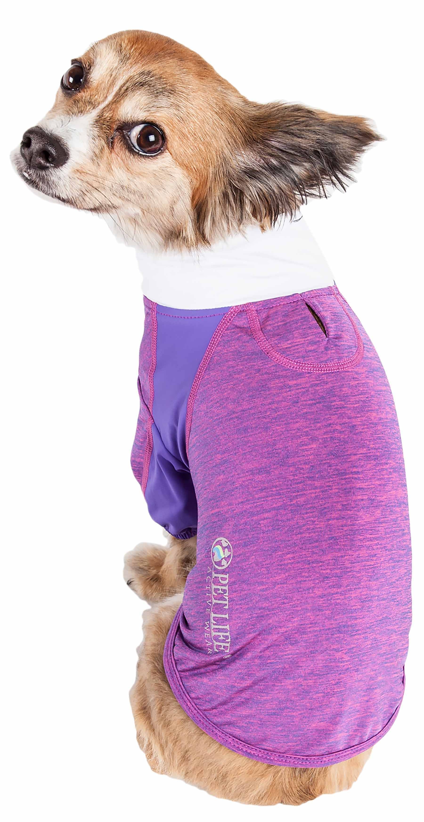 The Pet Life ACTIVE 'Chewitt Wagassy' Heathered Triple-Toned Long Sleeve Performance T-shirt features specially engineered Stretchy fabric that are Lightweight and Permeable resulting in a well Ventilated system that is specially developed to maximize Mobility and Breathability. Features 4-Way Stretch Technology that moves better in every direction with a customized relaxed fit without the squeeze and won't bunch up. The side of the body and arms feature a lighter blend of fabric for strategic ventilation. Features Quick-Drying properties that dries extremely fast while offering Anti-Odor technology that prevents odor causing microbes. The Chewitt-Wagassy Long Sleeve T-shirt is also UV Protectant against the suns harmful rays and fitted perfectly to help assist in containment or collection of shedded hairs. Design features Dual Reinforced stitching at every seam for durability with a convenient zippered design with protective zipper flaps preventing the pet's hairs from getting caught within the zipper tracks. Additionally this T features Reflective Taping for added night visibility and a Leash Slit along the back. Macine Washable. This style is part of our Pet Life Activewear Collection. Available in Multiple Sizes and Colors.