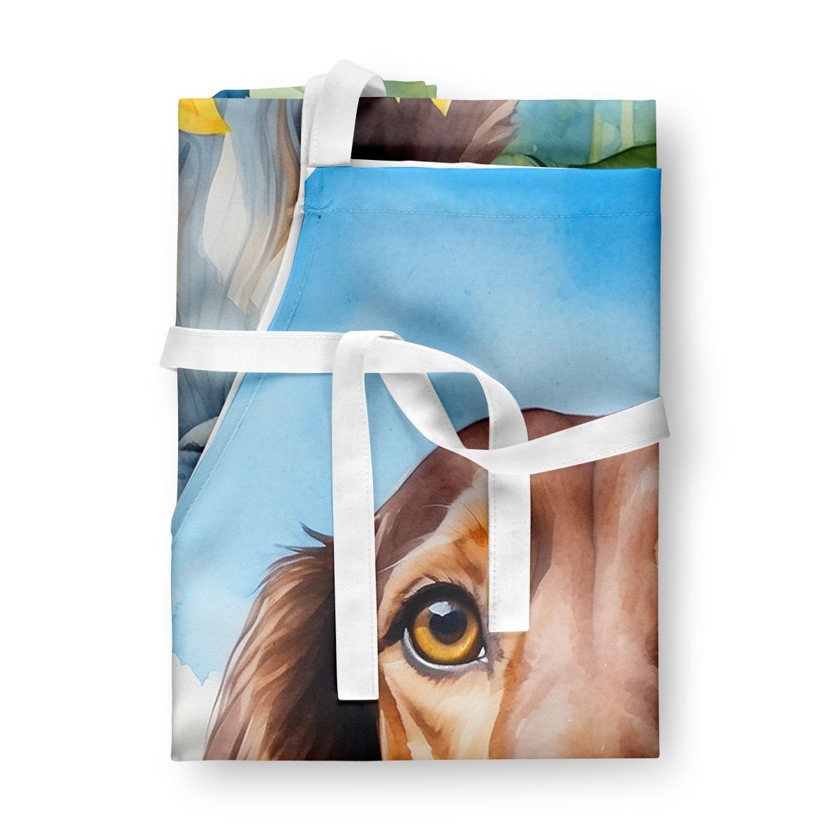 Apron featuring breed specific Saluki artwork. Elevate your cooking, baking, and grilling experiences with our versatile Kitchen or BBQ Apron. This Bib Style apron isn't just limited to culinary activities - it also serves as an excellent baking apron, artist apron, server apron, gardening apron, or even a dog grooming apron. The apron showcases vibrant full-color artwork contributed by one of our talented artists, bringing a dash of style to your daily tasks. With dimensions of approximately 27"W x 30"H, it provides ample coverage to protect your clothing from spills and splashes. Our apron is meticulously crafted from 100% Ultra Spun Polyester, known for its durability and lightweight nature. The apron comes with white tie straps, ensuring a comfortable and adjustable fit for all. It's a perfect choice for kitchen apron enthusiasts, whether you are a woman or a man. Designed for easy maintenance, this apron is fully machine washable. The quick-drying polyester material actively reduces staining, keeping your apron looking fresh and new for longer. Our beautifully designed apron isn't just a functional kitchen accessory - it's a fashion statement in the culinary world!