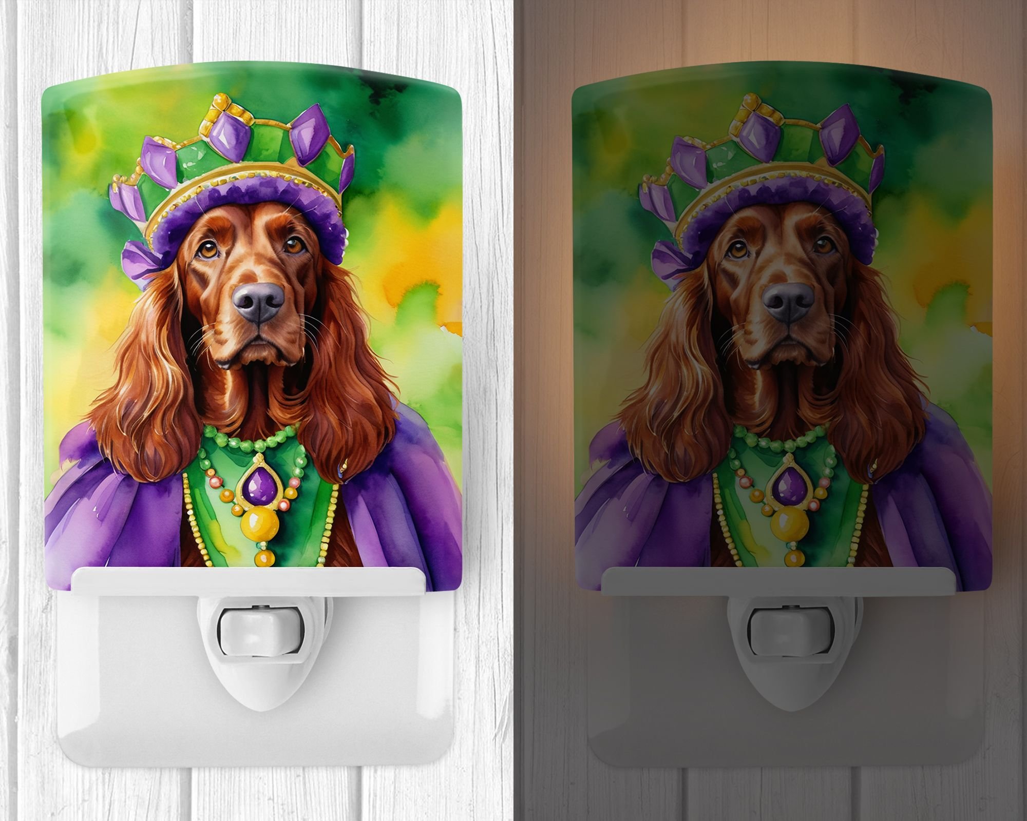 NEW Irish Setter King of Mardi Gras Ceramic Night Light Compact, UL-Certified, Ideal for Bedroom, Bathroom, Nursery, Hallway, Kitchen, 6x4x3, Multicol