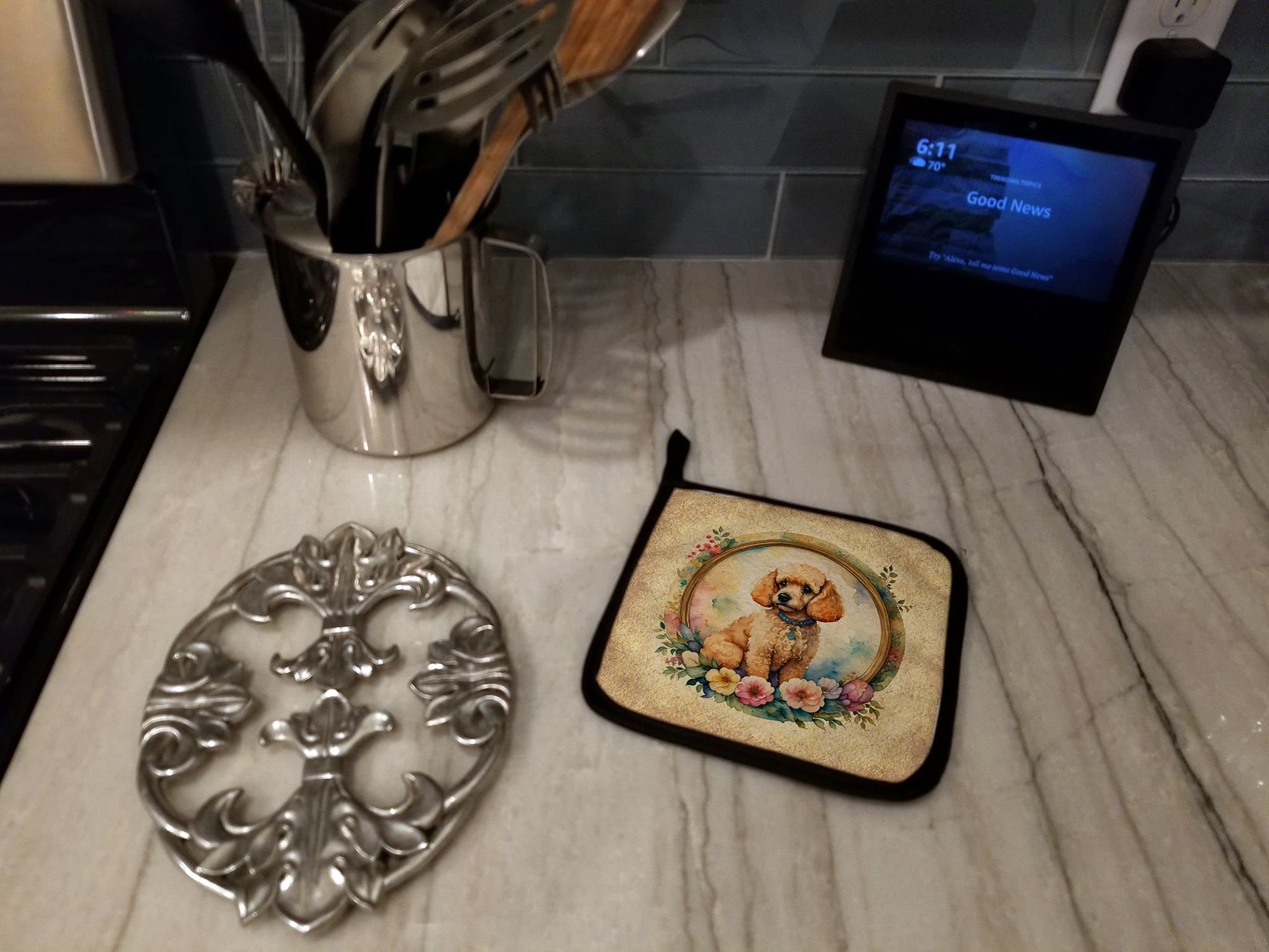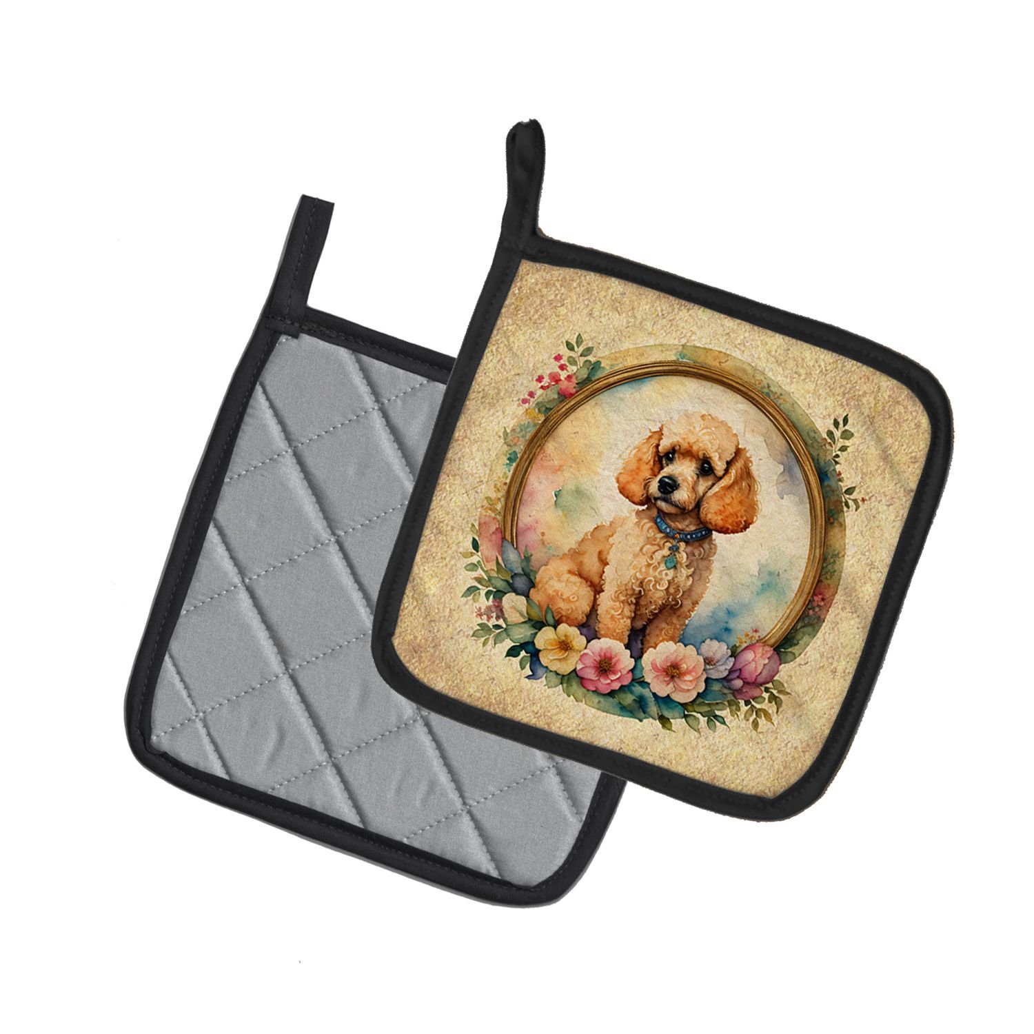 Home > Poodle and Flowers Pair of Pot Holders Kitchen Heat Resistant Pot Holders Sets Oven Hot Pads for Cooking Baking BBQ, 7 1/2 x 7 1/2