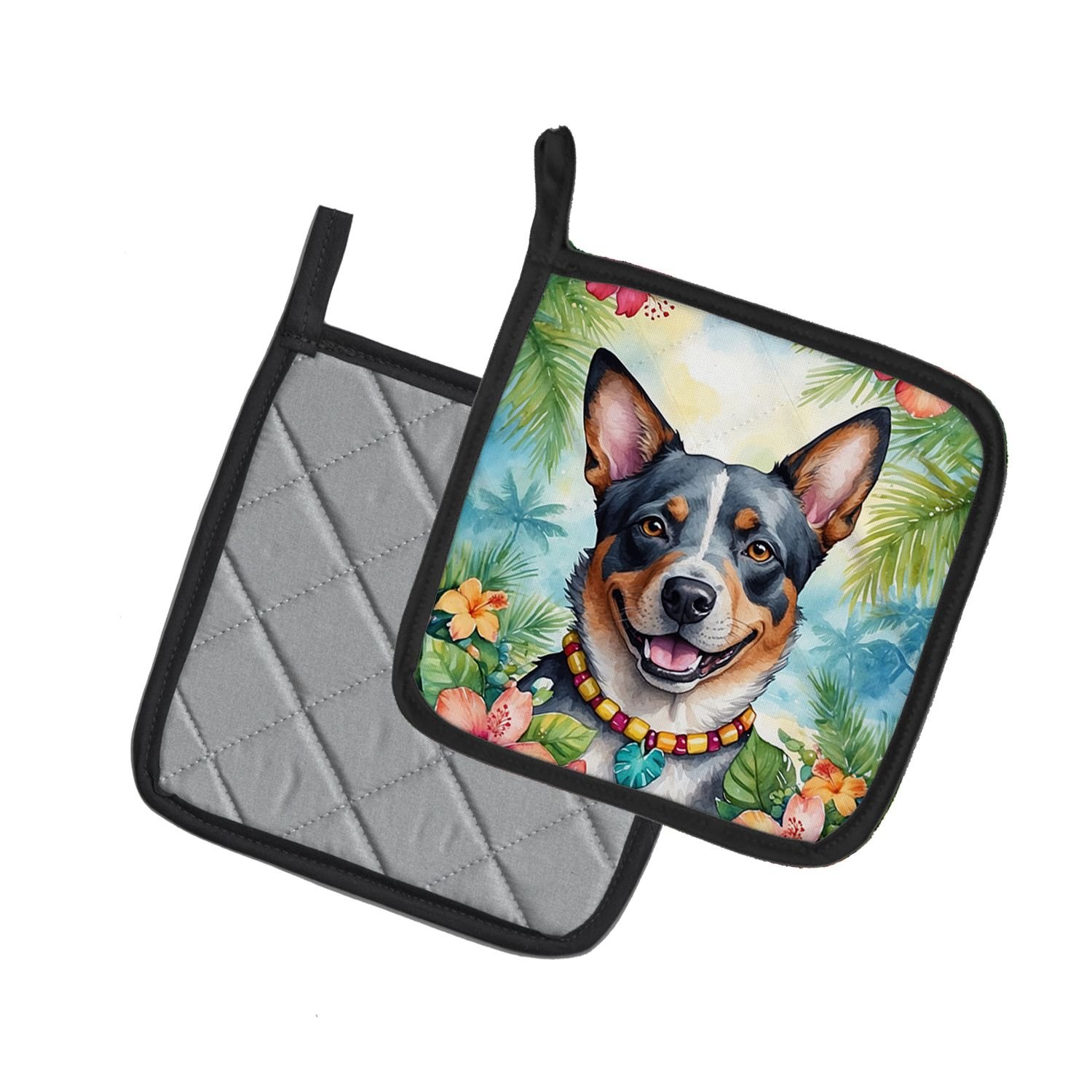 Australian Cattle Dog Luau Pair of Pot Holders Kitchen Heat Resistant Pot Holders Sets Oven Hot Pads for Cooking Baking BBQ, 7 1/2 x 7 1/2