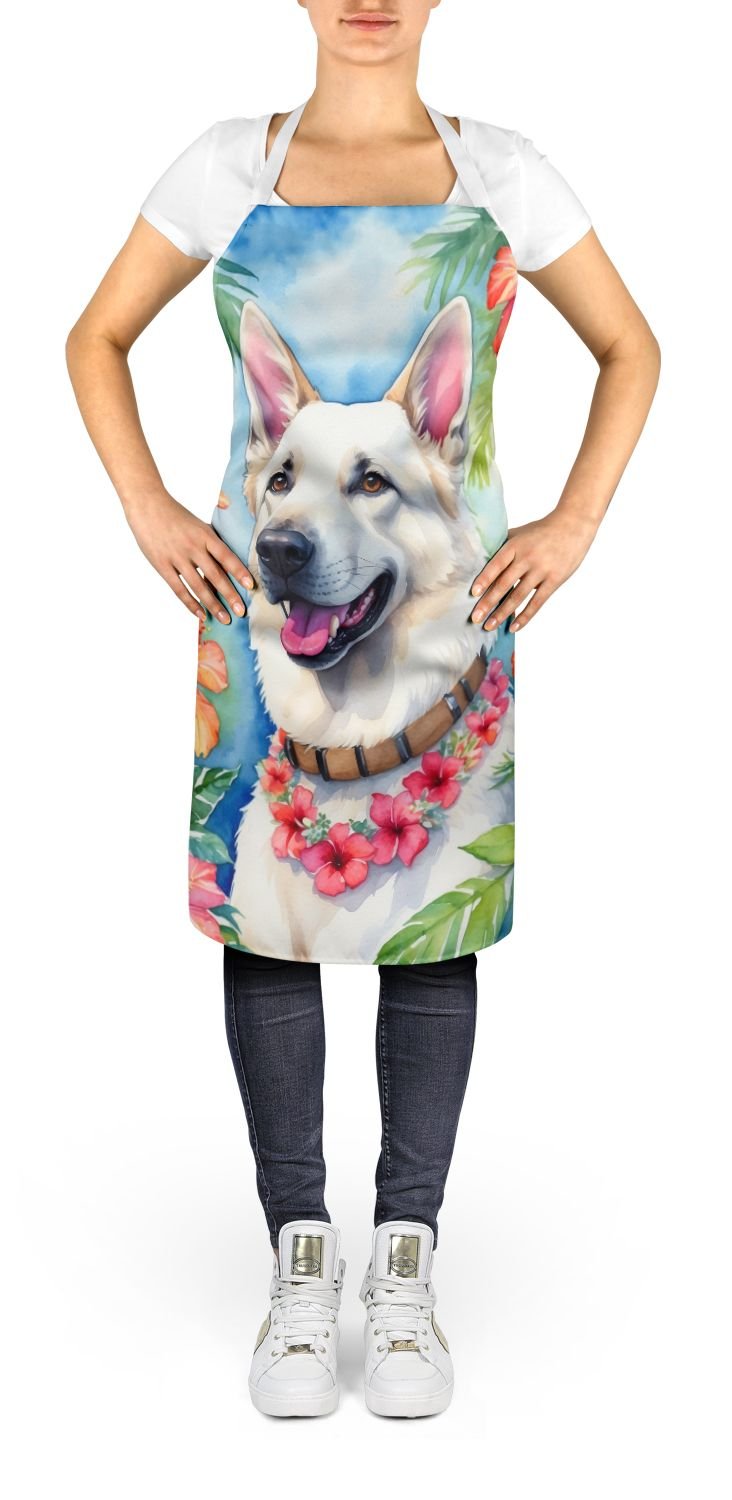 White German Shepherd Luau Apron Cooking Kitchen Server Baking Crafts Gardening for Adult Women Men, Unisex, Large, Multicolor