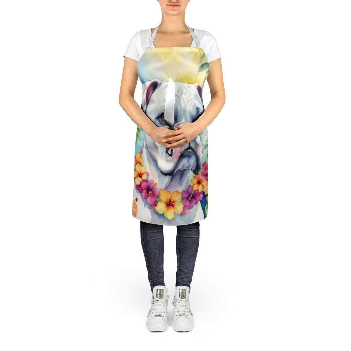 White Boxer Luau Apron Cooking Kitchen Server Baking Crafts Gardening for Adult Women Men, Unisex, Large, Multicolor