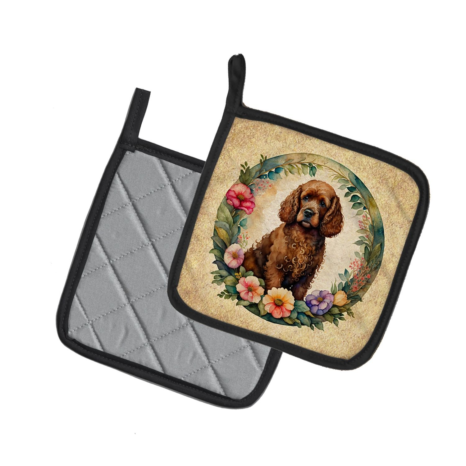 Home > Irish Water Spaniel and Flowers Pair of Pot Holders Kitchen Heat Resistant Pot Holders Sets Oven Hot Pads for Cooking Baking BBQ, 7 1/2 x 7 1/2