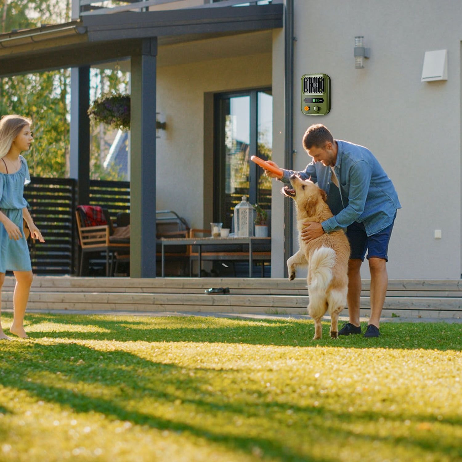 1. The maximum detection range is 32.8ft,if the dog is more than 32.8ft away from the device,it will not be triggered to work by dog bark.